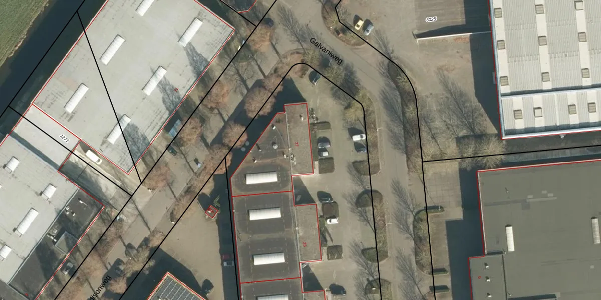 Het perceel waarop Galvaniweg 27 staat heeft een oppervlakte van 8725 m². Dit is een zeer groot perceel. De perceeloppervlakte wordt geregistreerd door het Kadaster. Gedetailleerde informatie over de maten van dit perceel kunt u vinden in het rapport Kadastrale kaart met maatvoering van Galvaniweg 27.