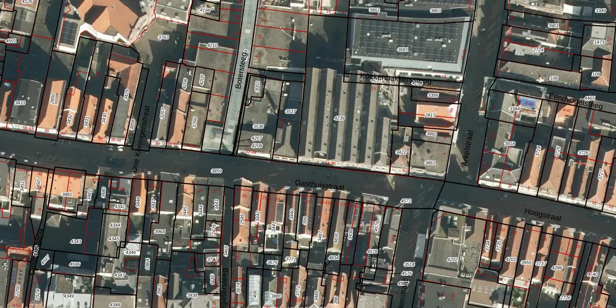 Het perceel waarop Gasthuisstraat 16 staat heeft een oppervlakte van 1119 m². Dit is een zeer groot perceel. De perceeloppervlakte wordt geregistreerd door het Kadaster. Gedetailleerde informatie over de maten van dit perceel kunt u vinden in het rapport Kadastrale kaart met maatvoering van Gasthuisstraat 16.