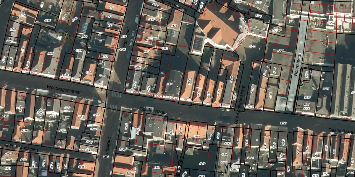 Het perceel waarop Gasthuisstraat 50-c staat heeft een oppervlakte van 555 m². Dit is een groot perceel. De perceeloppervlakte wordt geregistreerd door het Kadaster. Gedetailleerde informatie over de maten van dit perceel kunt u vinden in het rapport Kadastrale kaart met maatvoering van Gasthuisstraat 50-c.