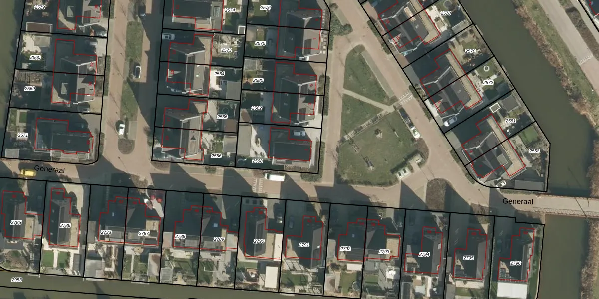 Generaal 1 is gelegen op kadastraal perceel GRC00P2568. Deze kadastrale aanduiding is uniek en wordt gebruikt door het Kadaster om eigendomsrechten en andere zakelijke rechten vast te leggen. Het perceel maakt onderdeel uit van de kadastrale gemeente Gorinchem.