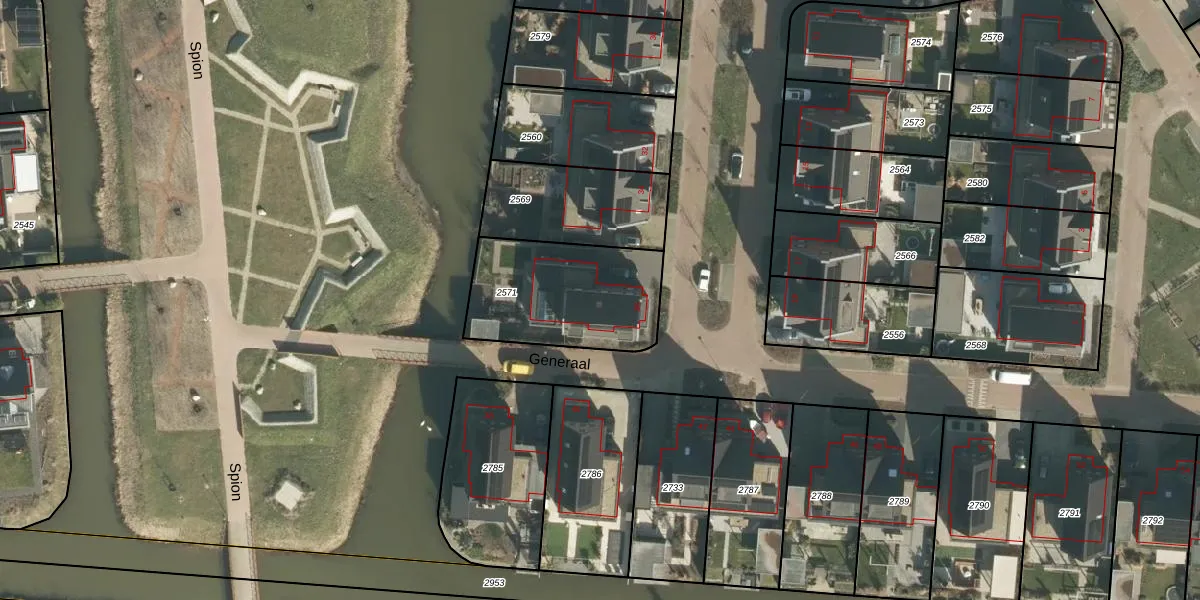 Generaal 36 is gelegen op kadastraal perceel GRC00P2571. Deze kadastrale aanduiding is uniek en wordt gebruikt door het Kadaster om eigendomsrechten en andere zakelijke rechten vast te leggen. Het perceel maakt onderdeel uit van de kadastrale gemeente Gorinchem.