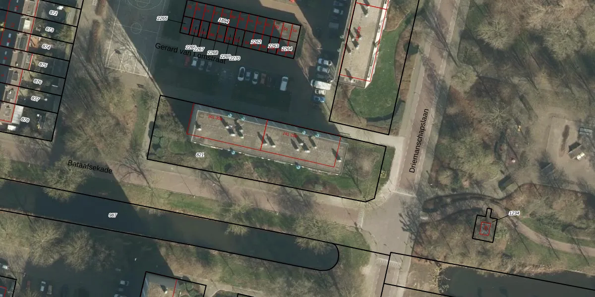 Het perceel waarop Gerard van Lomstraat 263 staat heeft een oppervlakte van 1610 m². Dit is een zeer groot perceel. De perceeloppervlakte wordt geregistreerd door het Kadaster. Gedetailleerde informatie over de maten van dit perceel kunt u vinden in het rapport Kadastrale kaart met maatvoering van Gerard van Lomstraat 263.