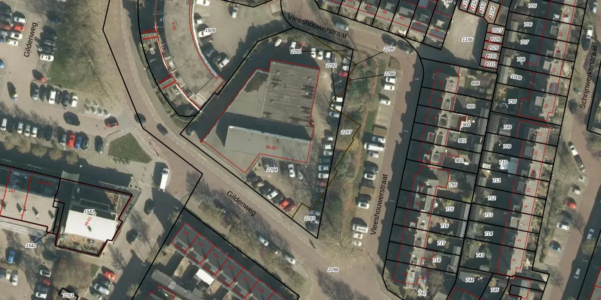 Gildenweg 66-09 is gelegen op kadastraal perceel GRC00E2294. Deze kadastrale aanduiding is uniek en wordt gebruikt door het Kadaster om eigendomsrechten en andere zakelijke rechten vast te leggen. Het perceel maakt onderdeel uit van de kadastrale gemeente Gorinchem.