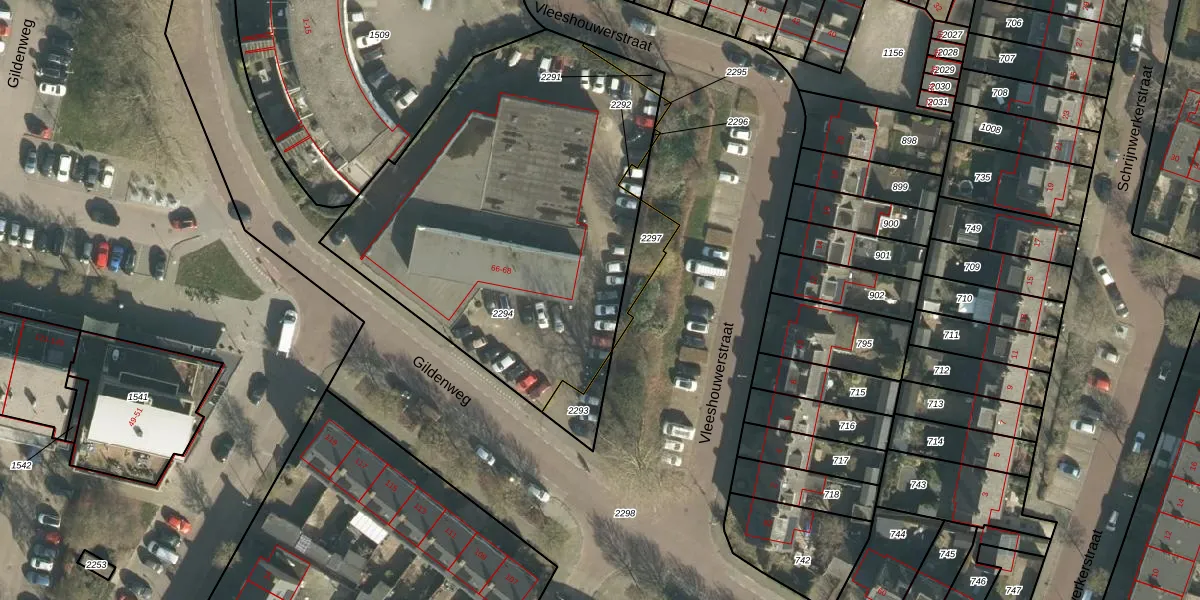 Gildenweg 66-10 is gelegen op kadastraal perceel GRC00E2294. Deze kadastrale aanduiding is uniek en wordt gebruikt door het Kadaster om eigendomsrechten en andere zakelijke rechten vast te leggen. Het perceel maakt onderdeel uit van de kadastrale gemeente Gorinchem.