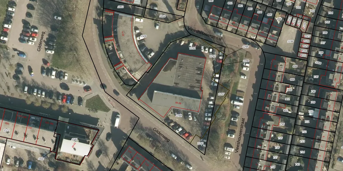 Het perceel waarop Gildenweg 66-17 staat heeft een oppervlakte van 2114 m². Dit is een zeer groot perceel. De perceeloppervlakte wordt geregistreerd door het Kadaster. Gedetailleerde informatie over de maten van dit perceel kunt u vinden in het rapport Kadastrale kaart met maatvoering van Gildenweg 66-17.