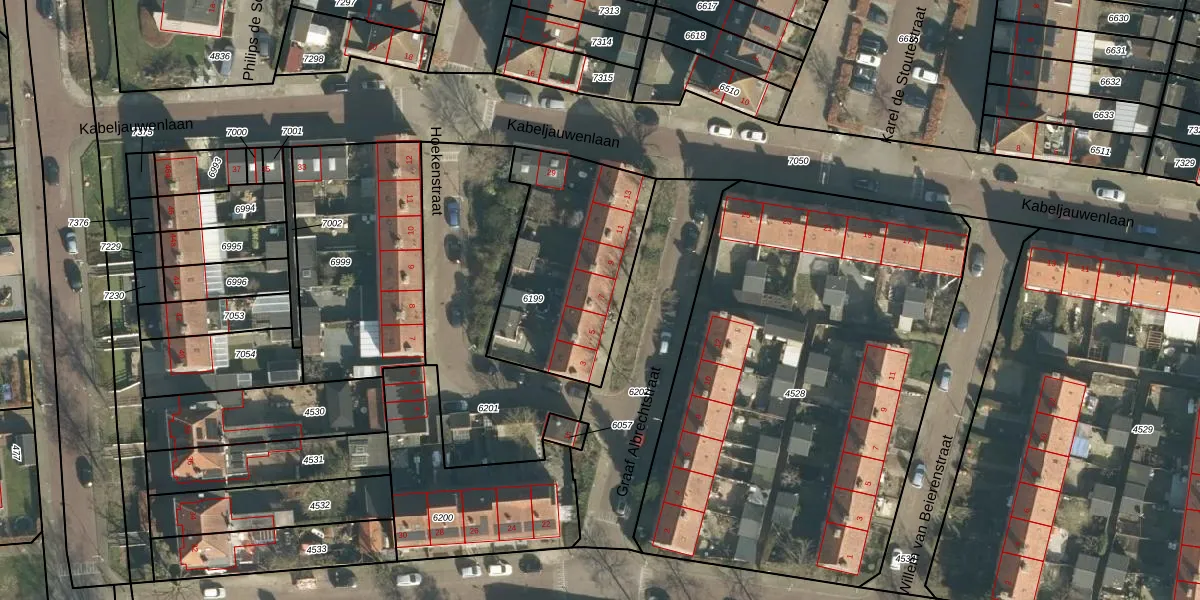 Het perceel waarop Graaf Albrechtstraat 7 staat heeft een oppervlakte van 670 m². Dit is een groot perceel. De perceeloppervlakte wordt geregistreerd door het Kadaster. Gedetailleerde informatie over de maten van dit perceel kunt u vinden in het rapport Kadastrale kaart met maatvoering van Graaf Albrechtstraat 7.