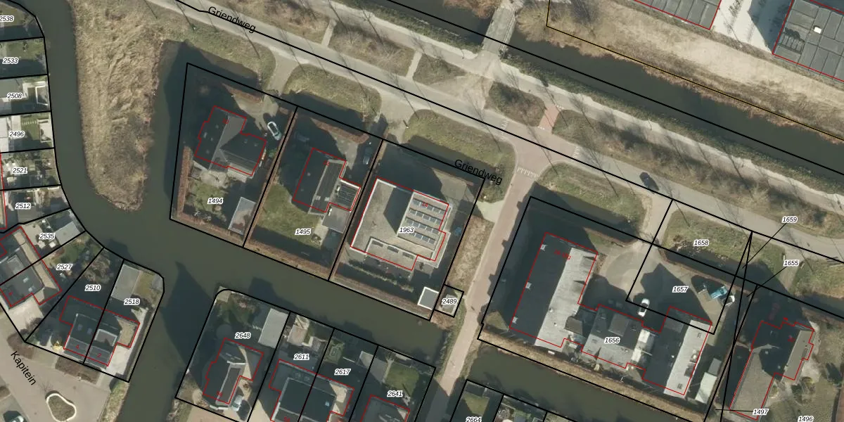 Griendweg 14 is gelegen op kadastraal perceel GRC00P1963. Deze kadastrale aanduiding is uniek en wordt gebruikt door het Kadaster om eigendomsrechten en andere zakelijke rechten vast te leggen. Het perceel maakt onderdeel uit van de kadastrale gemeente Gorinchem.