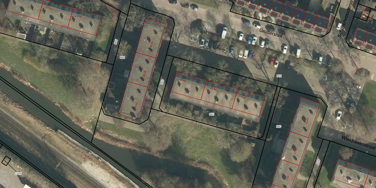 Gruttershof 43 is gelegen op kadastraal perceel GRC00E662. Deze kadastrale aanduiding is uniek en wordt gebruikt door het Kadaster om eigendomsrechten en andere zakelijke rechten vast te leggen. Het perceel maakt onderdeel uit van de kadastrale gemeente Gorinchem.