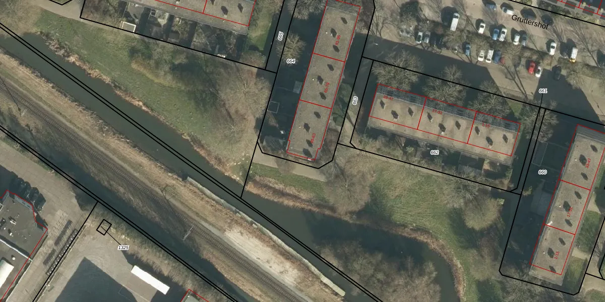 Gruttershof 49-a is gelegen op kadastraal perceel GRC00E664. Deze kadastrale aanduiding is uniek en wordt gebruikt door het Kadaster om eigendomsrechten en andere zakelijke rechten vast te leggen. Het perceel maakt onderdeel uit van de kadastrale gemeente Gorinchem.