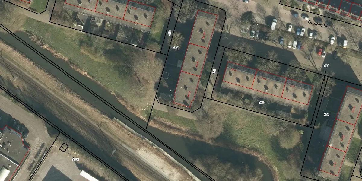 Gruttershof 51 is gelegen op kadastraal perceel GRC00E664. Deze kadastrale aanduiding is uniek en wordt gebruikt door het Kadaster om eigendomsrechten en andere zakelijke rechten vast te leggen. Het perceel maakt onderdeel uit van de kadastrale gemeente Gorinchem.