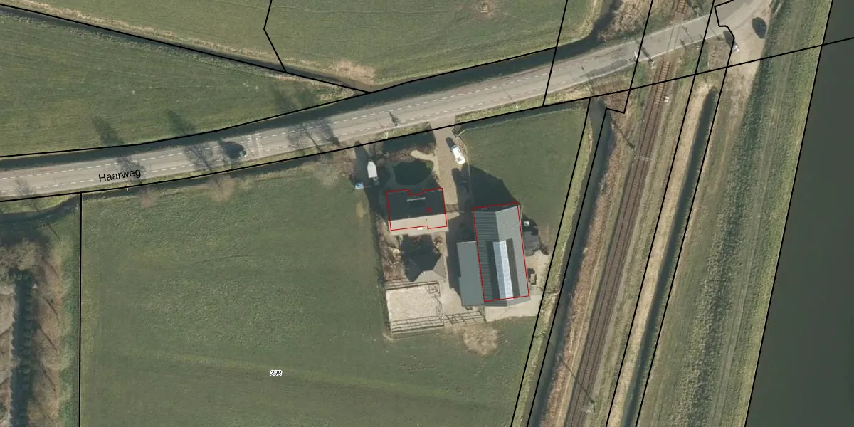Het perceel waarop Haarweg 1-b staat heeft een oppervlakte van 8735 m². Dit is een zeer groot perceel. De perceeloppervlakte wordt geregistreerd door het Kadaster. Gedetailleerde informatie over de maten van dit perceel kunt u vinden in het rapport Kadastrale kaart met maatvoering van Haarweg 1-b.