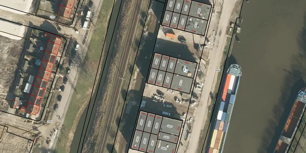 Het perceel waarop Handelskade 5-10 staat heeft een oppervlakte van 54 m². Dit is een klein perceel. De perceeloppervlakte wordt geregistreerd door het Kadaster. Gedetailleerde informatie over de maten van dit perceel kunt u vinden in het rapport Kadastrale kaart met maatvoering van Handelskade 5-10.