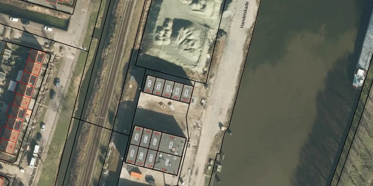 Handelskade 5-30 is gelegen op kadastraal perceel GRC00F5483. Deze kadastrale aanduiding is uniek en wordt gebruikt door het Kadaster om eigendomsrechten en andere zakelijke rechten vast te leggen. Het perceel maakt onderdeel uit van de kadastrale gemeente Gorinchem.
