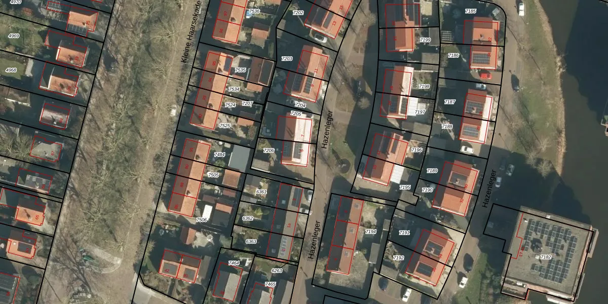 Gebruik de zoekbalk of klik op een perceel voor informatie over de adressen binnen dit perceel.