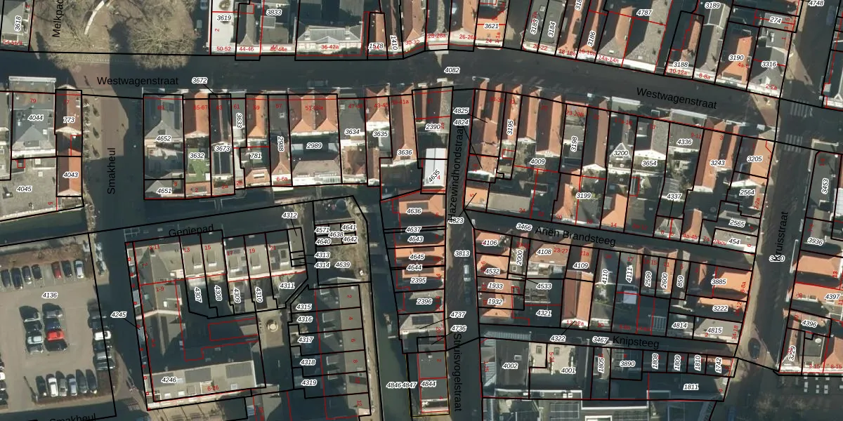 Gebruik de zoekbalk of klik op een perceel voor informatie over de adressen binnen dit perceel.