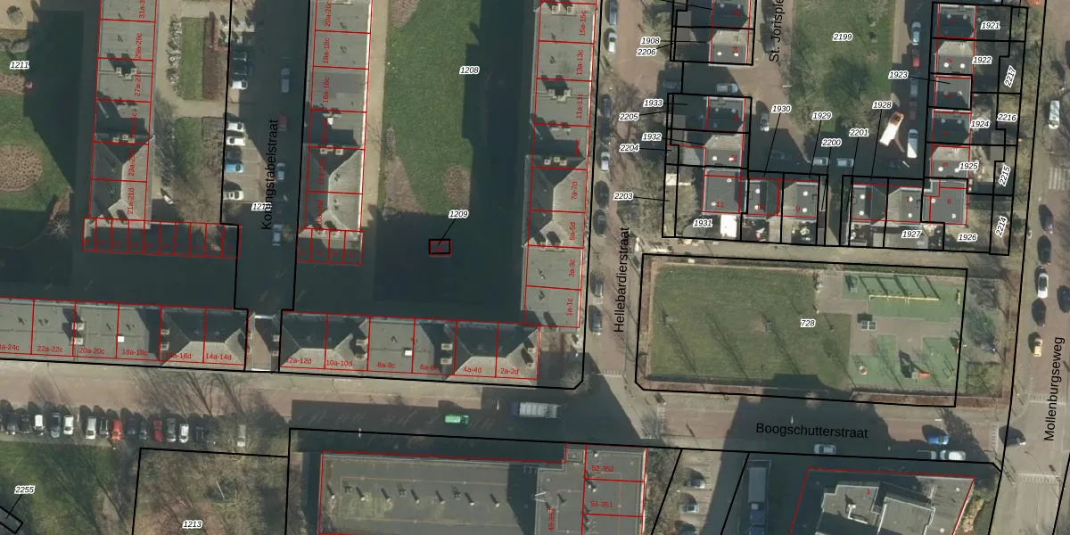Het perceel waarop Hellebardierstraat 3-c staat heeft een oppervlakte van 6311 m². Dit is een zeer groot perceel. De perceeloppervlakte wordt geregistreerd door het Kadaster. Gedetailleerde informatie over de maten van dit perceel kunt u vinden in het rapport Kadastrale kaart met maatvoering van Hellebardierstraat 3-c.