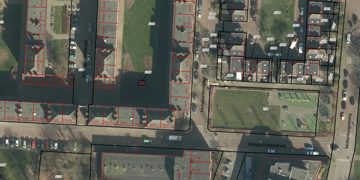 Het perceel waarop Hellebardierstraat 3-b staat heeft een oppervlakte van 6311 m². Dit is een zeer groot perceel. De perceeloppervlakte wordt geregistreerd door het Kadaster. Gedetailleerde informatie over de maten van dit perceel kunt u vinden in het rapport Kadastrale kaart met maatvoering van Hellebardierstraat 3-b.