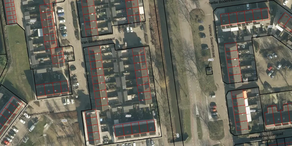 Het perceel waarop Hellendaelsingel 7 staat heeft een oppervlakte van 3103 m². Dit is een zeer groot perceel. De perceeloppervlakte wordt geregistreerd door het Kadaster. Gedetailleerde informatie over de maten van dit perceel kunt u vinden in het rapport Kadastrale kaart met maatvoering van Hellendaelsingel 7.