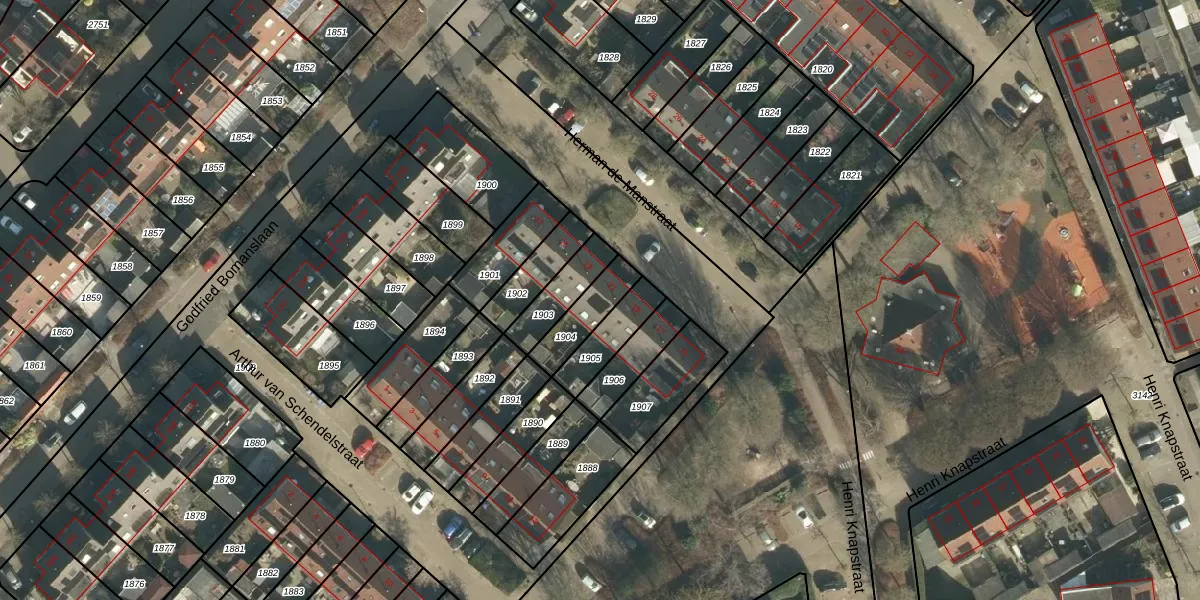 Gebruik de zoekbalk of klik op een perceel voor informatie over de adressen binnen dit perceel.