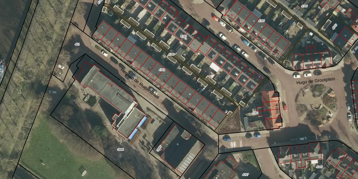 Herman de Ruijterstraat 13 is gelegen op kadastraal perceel GRC00F4781. Deze kadastrale aanduiding is uniek en wordt gebruikt door het Kadaster om eigendomsrechten en andere zakelijke rechten vast te leggen. Het perceel maakt onderdeel uit van de kadastrale gemeente Gorinchem.