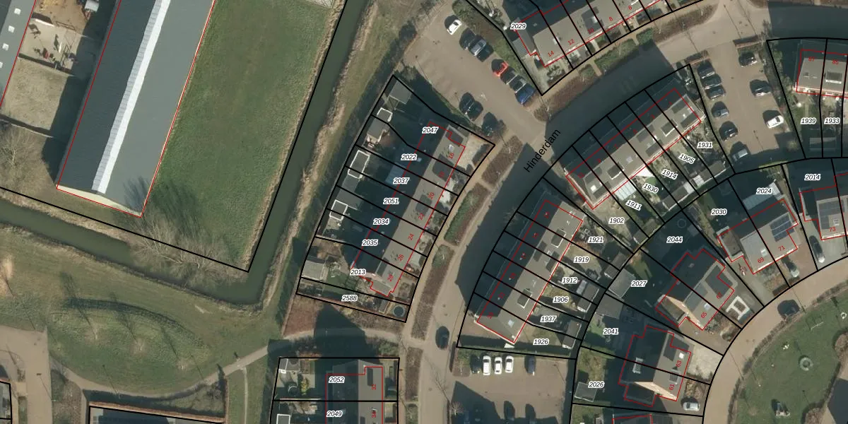 Hinderdam 22 is gelegen op kadastraal perceel GRC00P2051. Deze kadastrale aanduiding is uniek en wordt gebruikt door het Kadaster om eigendomsrechten en andere zakelijke rechten vast te leggen. Het perceel maakt onderdeel uit van de kadastrale gemeente Gorinchem.