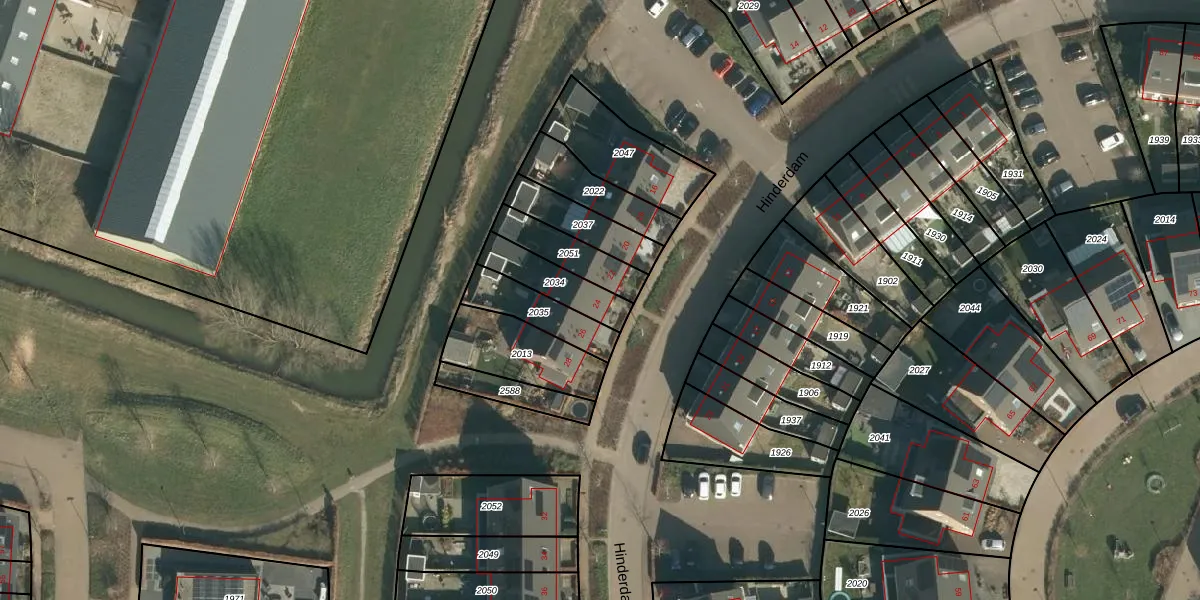 Hinderdam 24 is gelegen op kadastraal perceel GRC00P2034. Deze kadastrale aanduiding is uniek en wordt gebruikt door het Kadaster om eigendomsrechten en andere zakelijke rechten vast te leggen. Het perceel maakt onderdeel uit van de kadastrale gemeente Gorinchem.