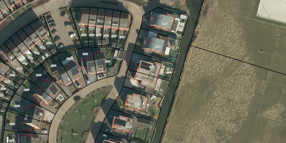 Hinderdam 90 is gelegen op kadastraal perceel GRC00P2477. Deze kadastrale aanduiding is uniek en wordt gebruikt door het Kadaster om eigendomsrechten en andere zakelijke rechten vast te leggen. Het perceel maakt onderdeel uit van de kadastrale gemeente Gorinchem.