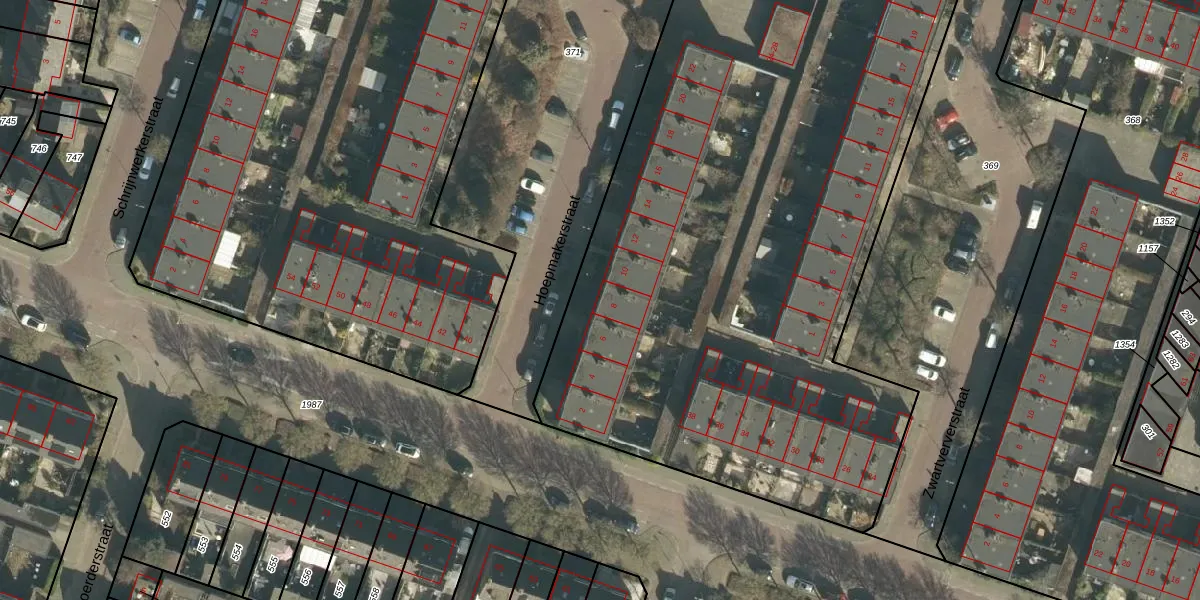 Het perceel waarop Hoepmakerstraat 8 staat heeft een oppervlakte van 7116 m². Dit is een zeer groot perceel. De perceeloppervlakte wordt geregistreerd door het Kadaster. Gedetailleerde informatie over de maten van dit perceel kunt u vinden in het rapport Kadastrale kaart met maatvoering van Hoepmakerstraat 8.