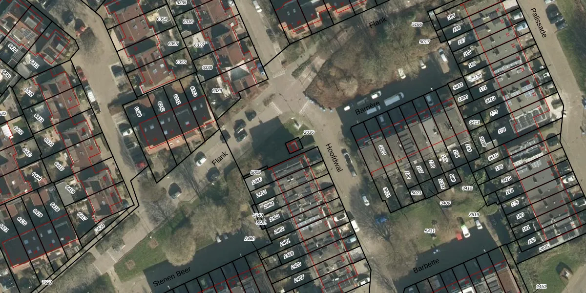 Gebruik de zoekbalk of klik op een perceel voor informatie over de adressen binnen dit perceel.