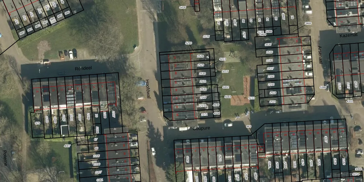 Het perceel waarop Hoofdwal 44 staat heeft een oppervlakte van 123 m². Dit is een middelgroot perceel. De perceeloppervlakte wordt geregistreerd door het Kadaster. Gedetailleerde informatie over de maten van dit perceel kunt u vinden in het rapport Kadastrale kaart met maatvoering van Hoofdwal 44.