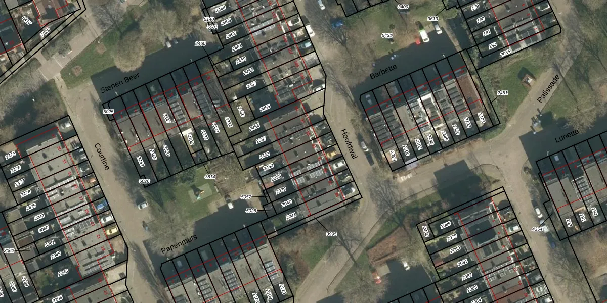 Gebruik de zoekbalk of klik op een perceel voor informatie over de adressen binnen dit perceel.