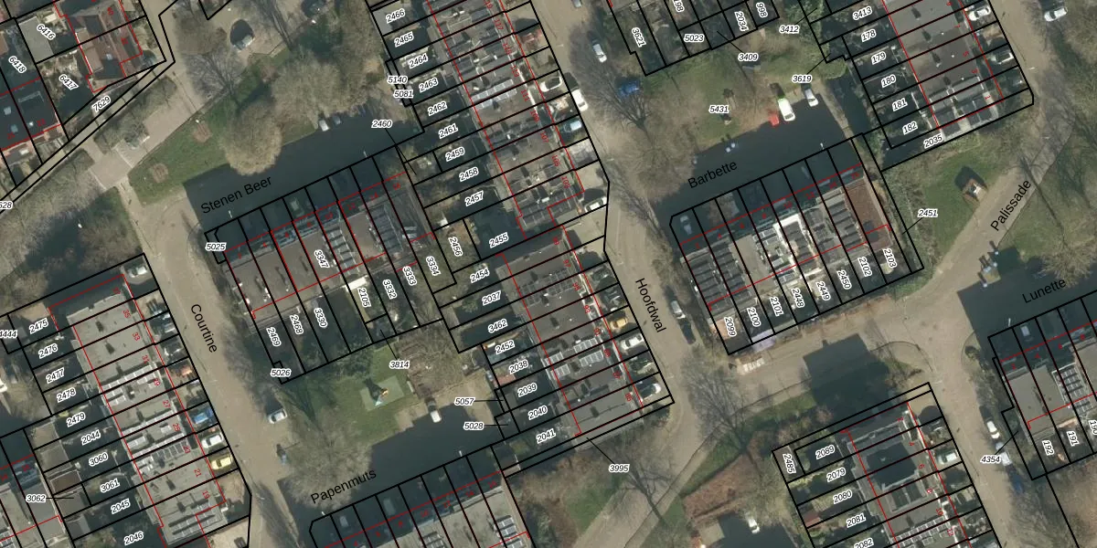 Gebruik de zoekbalk of klik op een perceel voor informatie over de adressen binnen dit perceel.