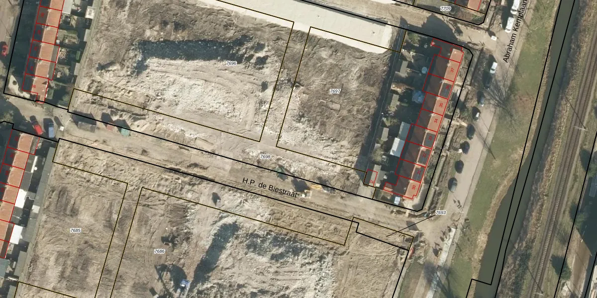 H.P. de Biestraat 10 is gelegen op kadastraal perceel GRC00A7697. Deze kadastrale aanduiding is uniek en wordt gebruikt door het Kadaster om eigendomsrechten en andere zakelijke rechten vast te leggen. Het perceel maakt onderdeel uit van de kadastrale gemeente Gorinchem.