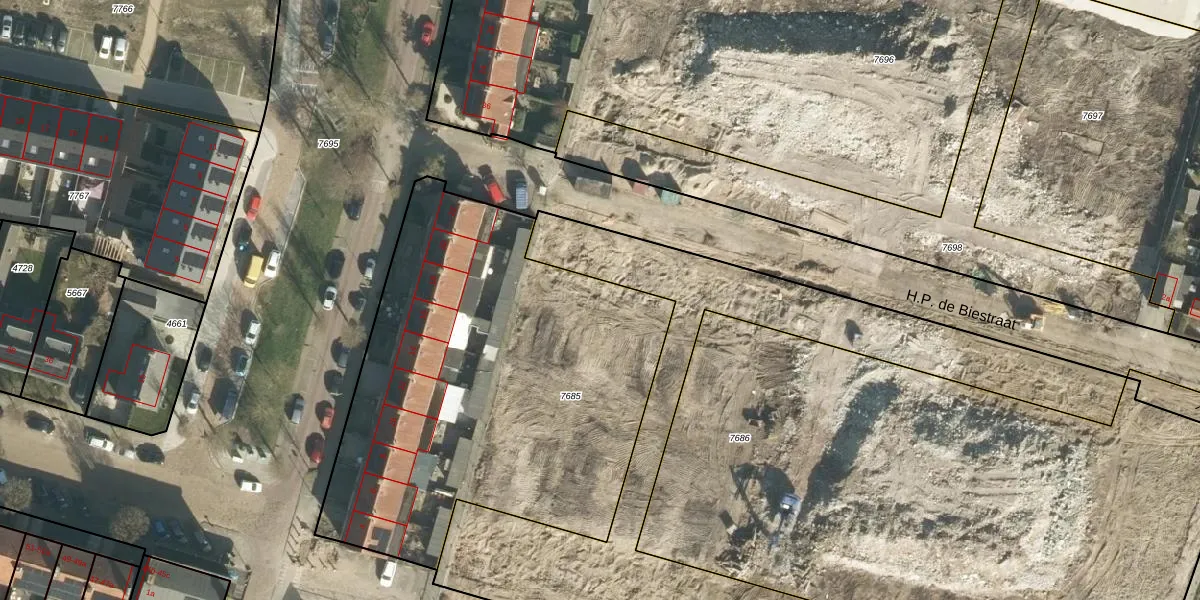 H.P. de Biestraat 33 is gelegen op kadastraal perceel GRC00A7685. Deze kadastrale aanduiding is uniek en wordt gebruikt door het Kadaster om eigendomsrechten en andere zakelijke rechten vast te leggen. Het perceel maakt onderdeel uit van de kadastrale gemeente Gorinchem.