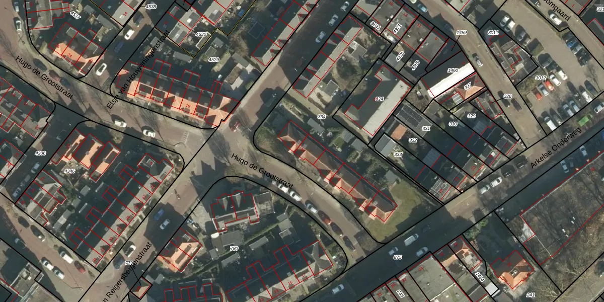 Het perceel waarop Hugo de Grootstraat 10 staat heeft een oppervlakte van 1821 m². Dit is een zeer groot perceel. De perceeloppervlakte wordt geregistreerd door het Kadaster. Gedetailleerde informatie over de maten van dit perceel kunt u vinden in het rapport Kadastrale kaart met maatvoering van Hugo de Grootstraat 10.
