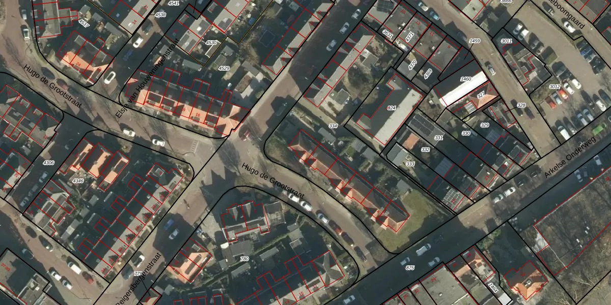 Hugo de Grootstraat 12 is gelegen op kadastraal perceel GRC00F334. Deze kadastrale aanduiding is uniek en wordt gebruikt door het Kadaster om eigendomsrechten en andere zakelijke rechten vast te leggen. Het perceel maakt onderdeel uit van de kadastrale gemeente Gorinchem.