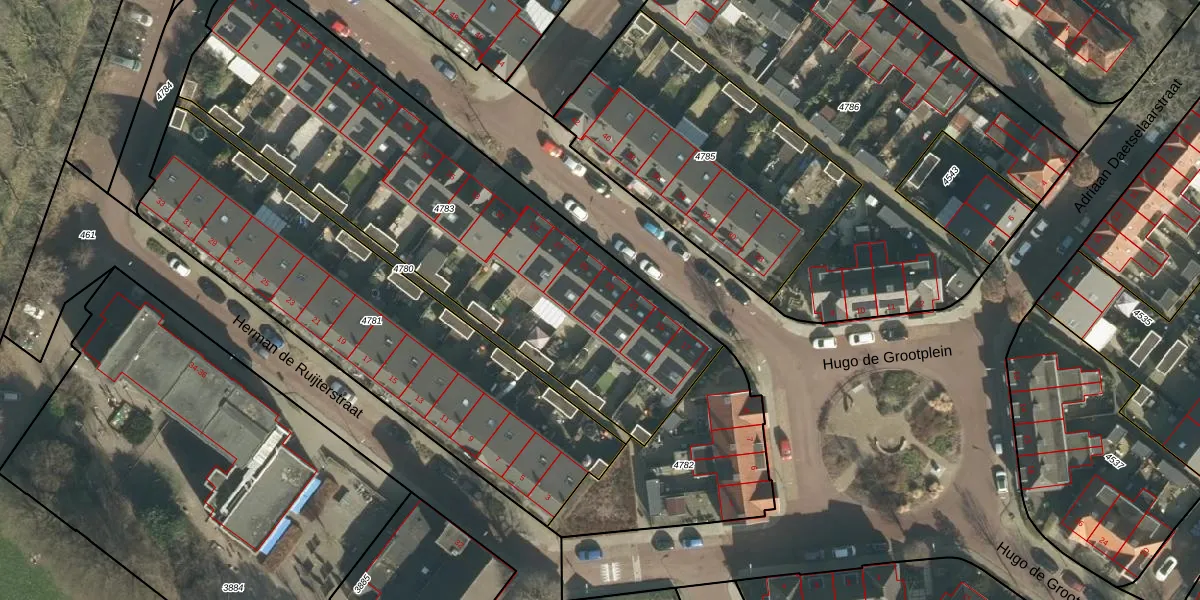 Hugo de Grootstraat 23 is gelegen op kadastraal perceel GRC00F4783. Deze kadastrale aanduiding is uniek en wordt gebruikt door het Kadaster om eigendomsrechten en andere zakelijke rechten vast te leggen. Het perceel maakt onderdeel uit van de kadastrale gemeente Gorinchem.