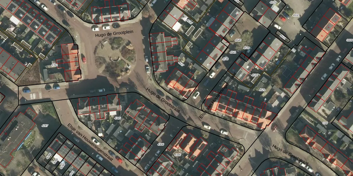 Hugo de Grootstraat 24 is gelegen op kadastraal perceel GRC00F4537. Deze kadastrale aanduiding is uniek en wordt gebruikt door het Kadaster om eigendomsrechten en andere zakelijke rechten vast te leggen. Het perceel maakt onderdeel uit van de kadastrale gemeente Gorinchem.