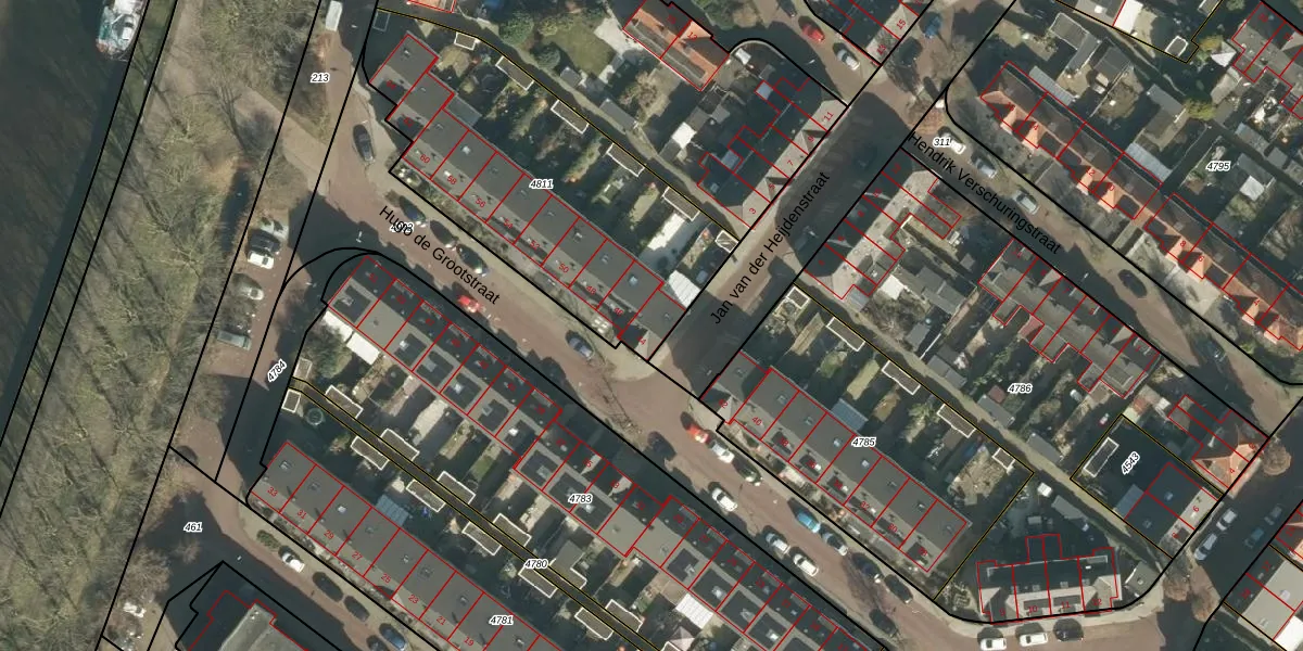 Hugo de Grootstraat 44 is gelegen op kadastraal perceel GRC00F4811. Deze kadastrale aanduiding is uniek en wordt gebruikt door het Kadaster om eigendomsrechten en andere zakelijke rechten vast te leggen. Het perceel maakt onderdeel uit van de kadastrale gemeente Gorinchem.
