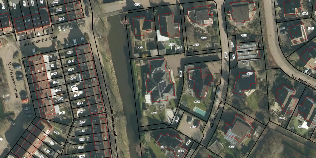 Het perceel waarop Ida Gerhardtpad 4 staat heeft een oppervlakte van 1425 m². Dit is een zeer groot perceel. De perceeloppervlakte wordt geregistreerd door het Kadaster. Gedetailleerde informatie over de maten van dit perceel kunt u vinden in het rapport Kadastrale kaart met maatvoering van Ida Gerhardtpad 4.