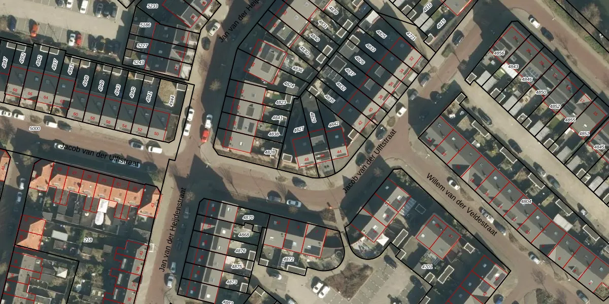 Gebruik de zoekbalk of klik op een perceel voor informatie over de adressen binnen dit perceel.