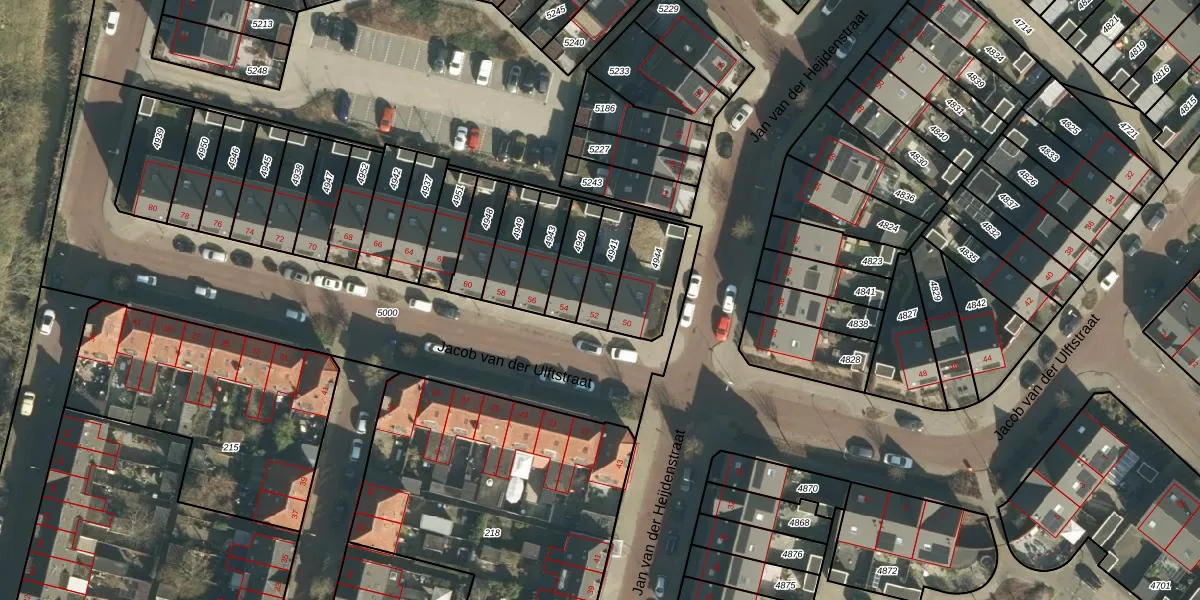 Jacob van der Ulftstraat 52 is gelegen op kadastraal perceel GRC00F4941. Deze kadastrale aanduiding is uniek en wordt gebruikt door het Kadaster om eigendomsrechten en andere zakelijke rechten vast te leggen. Het perceel maakt onderdeel uit van de kadastrale gemeente Gorinchem.