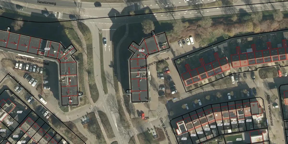 Het perceel waarop Jacques Perkstraat 105 staat heeft een oppervlakte van 645 m². Dit is een groot perceel. De perceeloppervlakte wordt geregistreerd door het Kadaster. Gedetailleerde informatie over de maten van dit perceel kunt u vinden in het rapport Kadastrale kaart met maatvoering van Jacques Perkstraat 105.