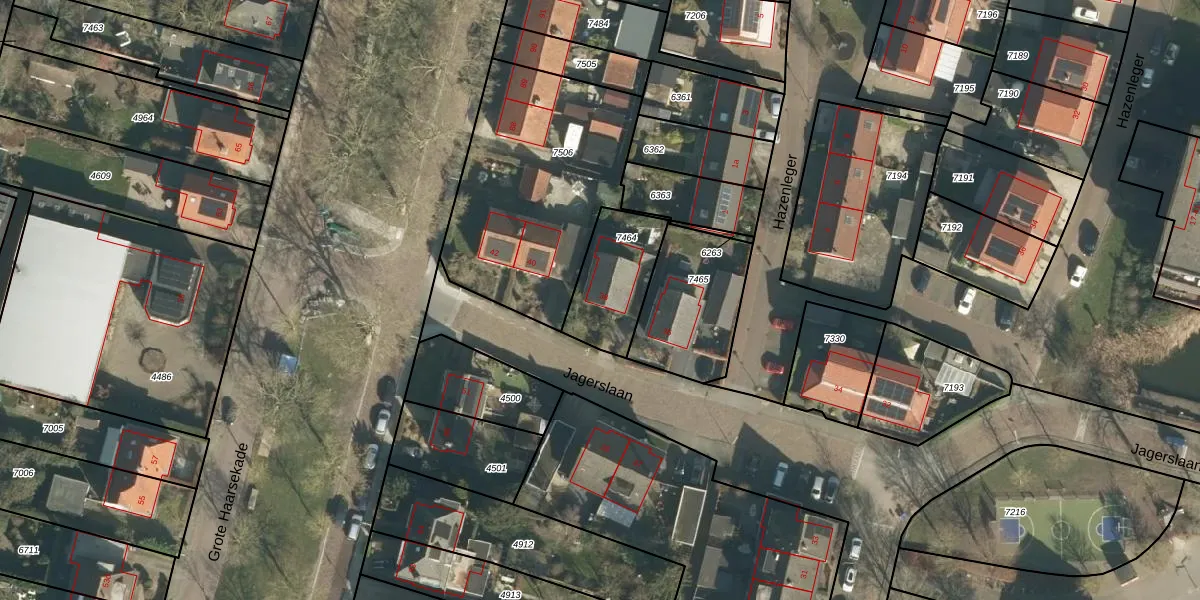 Jagerslaan 38 is gelegen op kadastraal perceel GRC00A7464. Deze kadastrale aanduiding is uniek en wordt gebruikt door het Kadaster om eigendomsrechten en andere zakelijke rechten vast te leggen. Het perceel maakt onderdeel uit van de kadastrale gemeente Gorinchem.