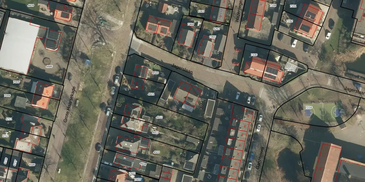 Jagerslaan 39 is gelegen op kadastraal perceel GRC00A6880. Deze kadastrale aanduiding is uniek en wordt gebruikt door het Kadaster om eigendomsrechten en andere zakelijke rechten vast te leggen. Het perceel maakt onderdeel uit van de kadastrale gemeente Gorinchem.