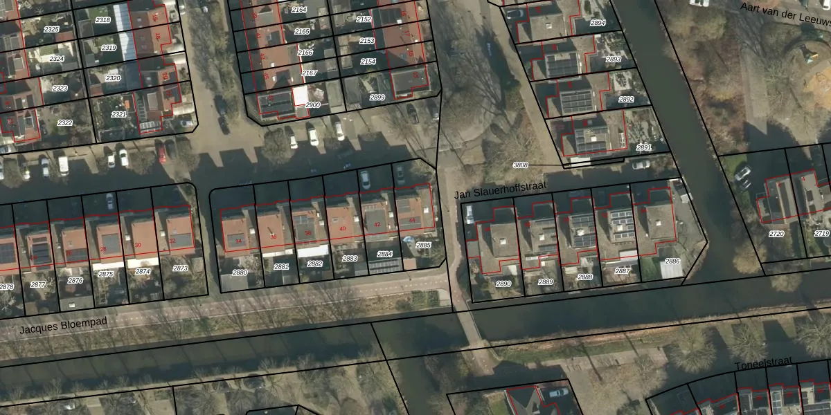 Gebruik de zoekbalk of klik op een perceel voor informatie over de adressen binnen dit perceel.