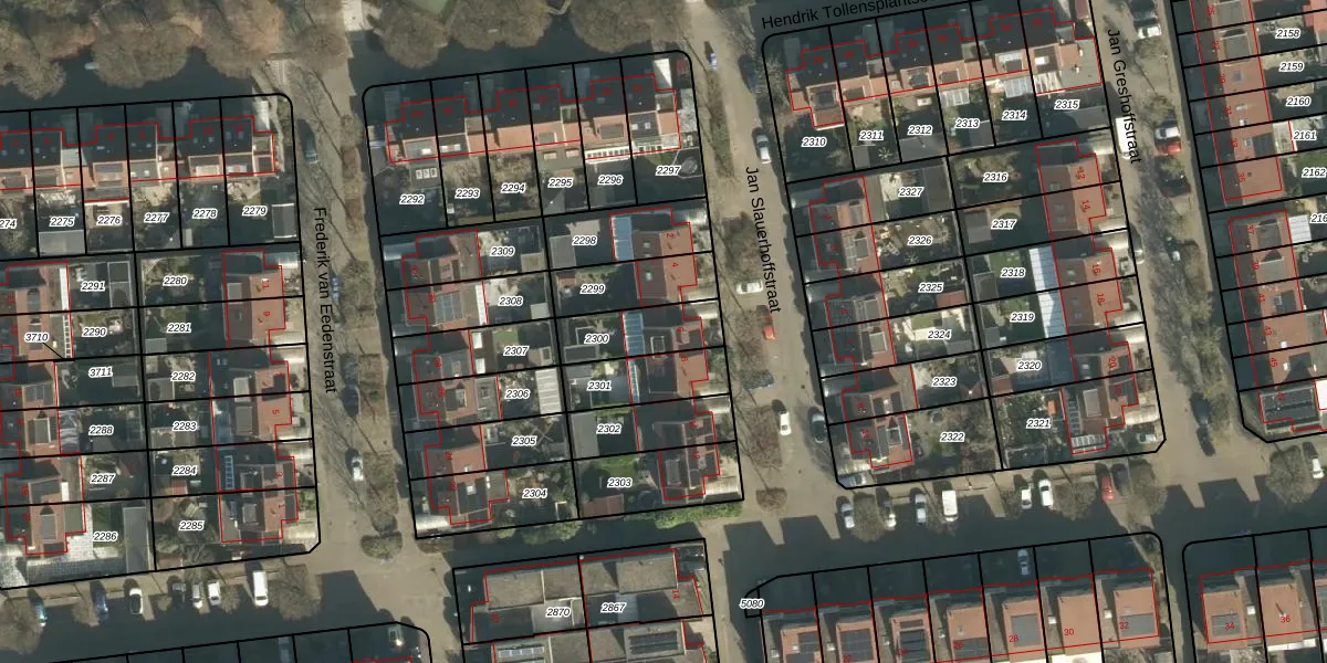 Gebruik de zoekbalk of klik op een perceel voor informatie over de adressen binnen dit perceel.