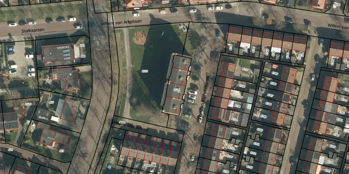 Het perceel waarop Johan van Egmondstraat 3-d staat heeft een oppervlakte van 335 m². Dit is een groot perceel. De perceeloppervlakte wordt geregistreerd door het Kadaster. Gedetailleerde informatie over de maten van dit perceel kunt u vinden in het rapport Kadastrale kaart met maatvoering van Johan van Egmondstraat 3-d.