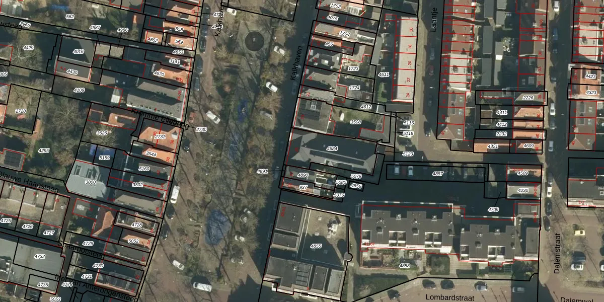 Het perceel waarop Kalkhaven 25 staat heeft een oppervlakte van 325 m². Dit is een groot perceel. De perceeloppervlakte wordt geregistreerd door het Kadaster. Gedetailleerde informatie over de maten van dit perceel kunt u vinden in het rapport Kadastrale kaart met maatvoering van Kalkhaven 25.