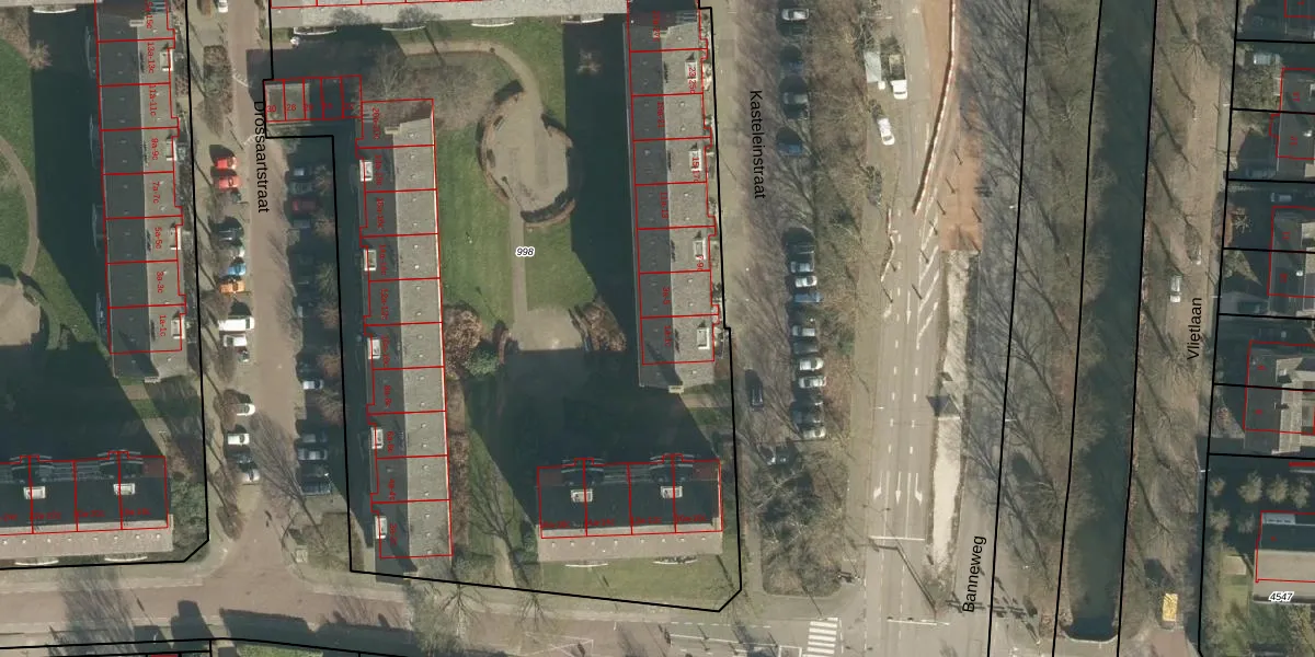 Het perceel waarop Kasteleinstraat 1-a staat heeft een oppervlakte van 6211 m². Dit is een zeer groot perceel. De perceeloppervlakte wordt geregistreerd door het Kadaster. Gedetailleerde informatie over de maten van dit perceel kunt u vinden in het rapport Kadastrale kaart met maatvoering van Kasteleinstraat 1-a.